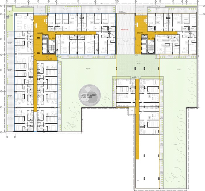 Desarrollo de Anteproyecto de Conjunto Residencial formado por 321 departamentos desarrollados en 13 pisos + azotea y 2 sótanos.